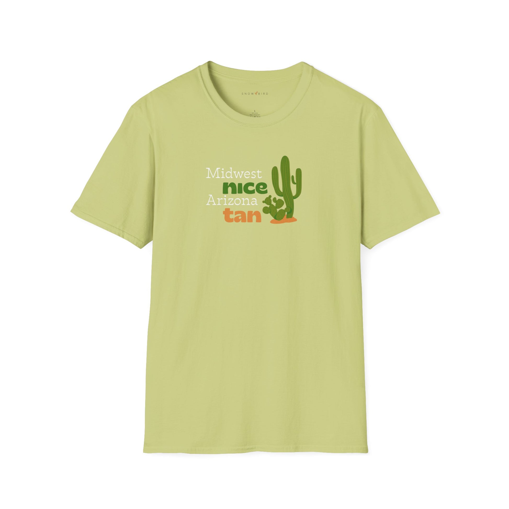 Soft, airy, and delightfully cheeky, this Midwest Nice, Arizona Tan tee brings a smile with its friendly saguaro and playful nod to the snowbird life. It’s the perfect blend of heartland charm and desert glow: a reminder that you can take the bird out of the Midwest… but once you’ve perched in Arizona, you may never want to fly back.