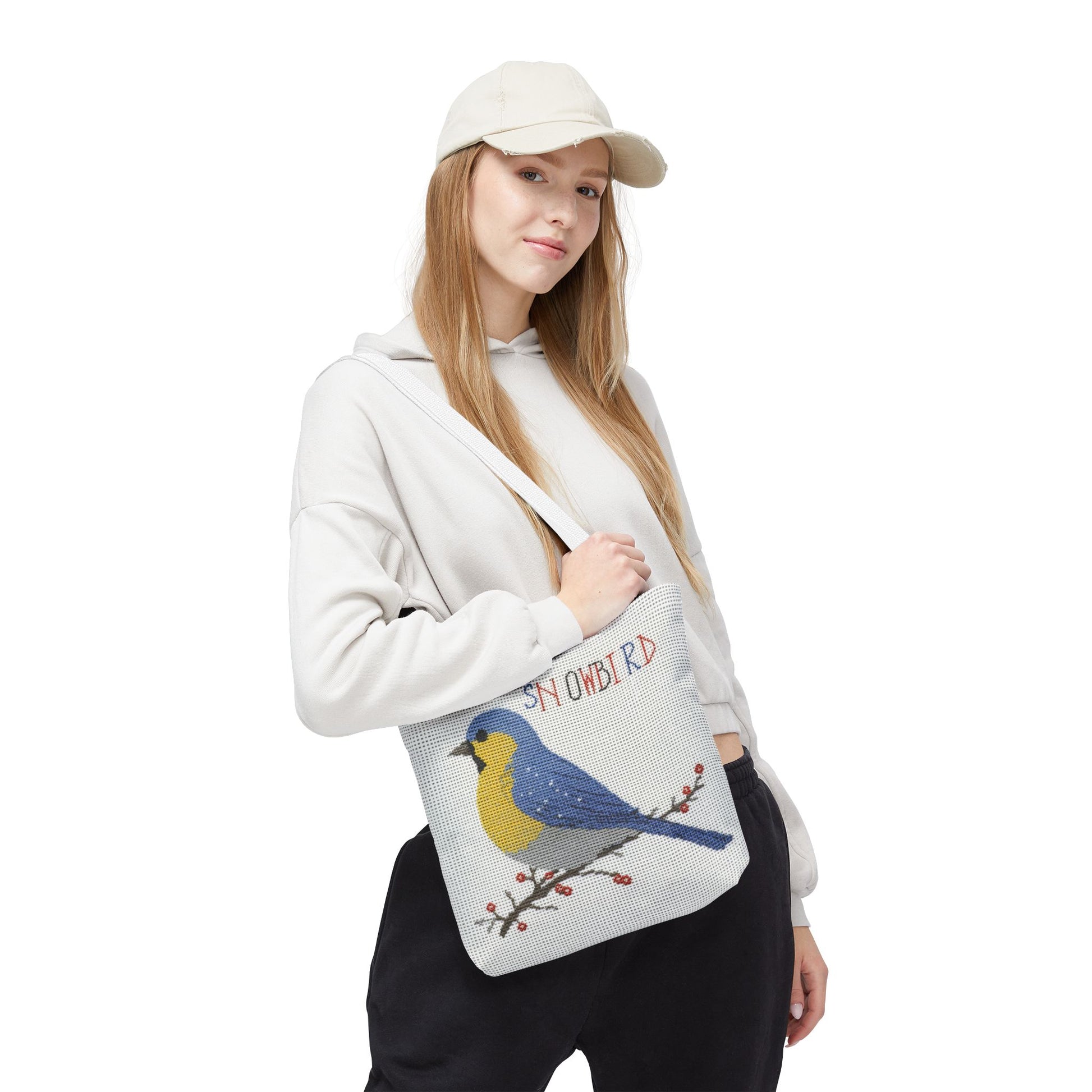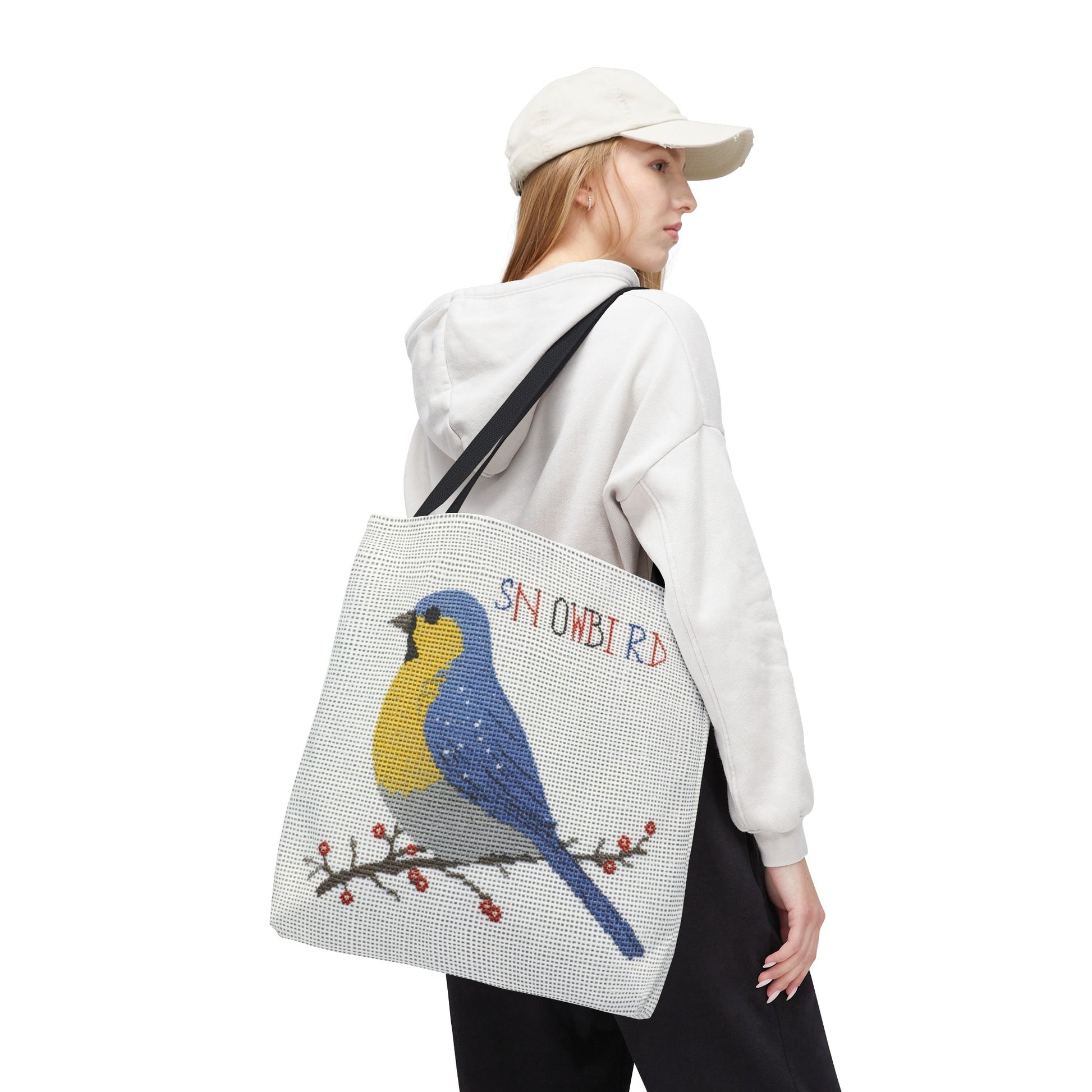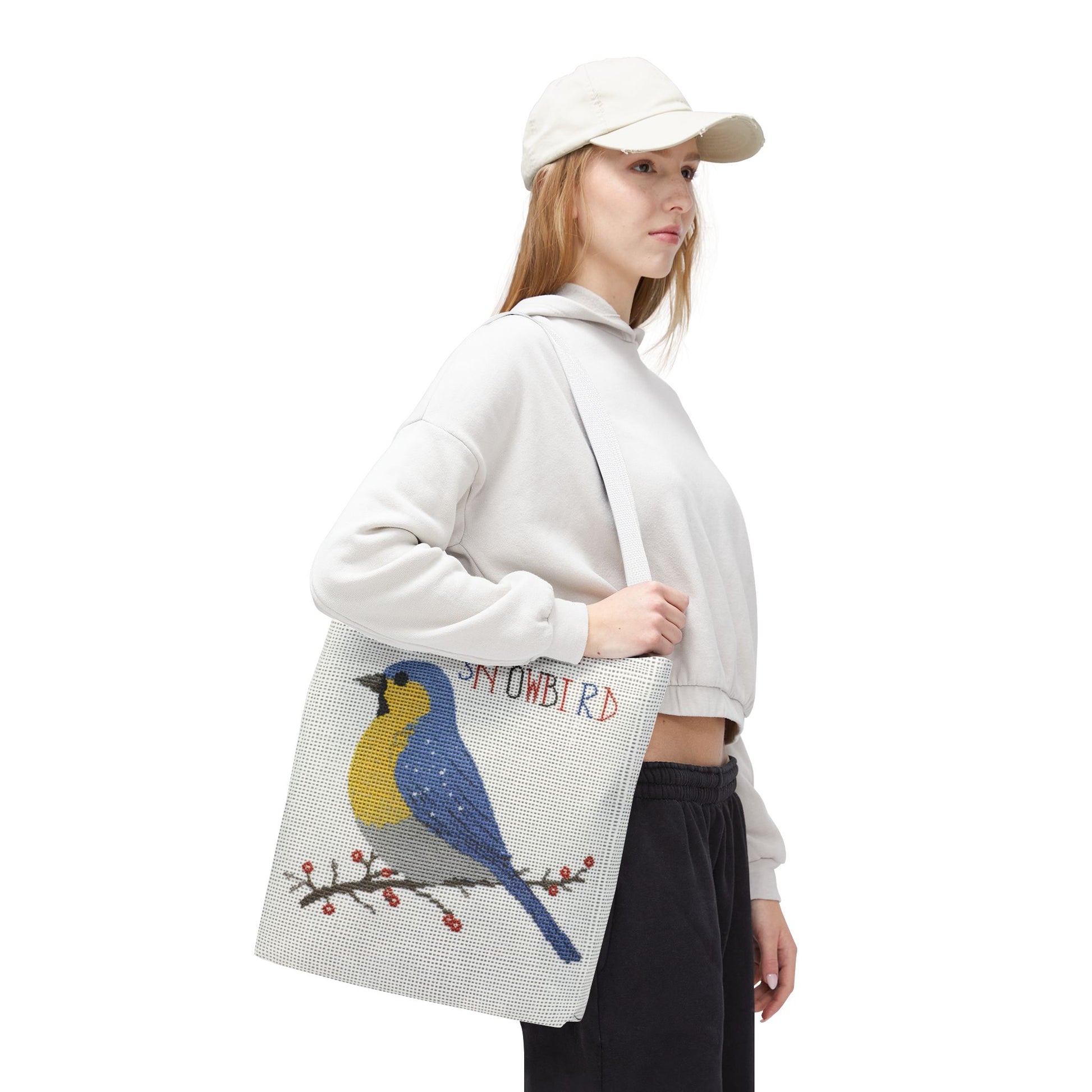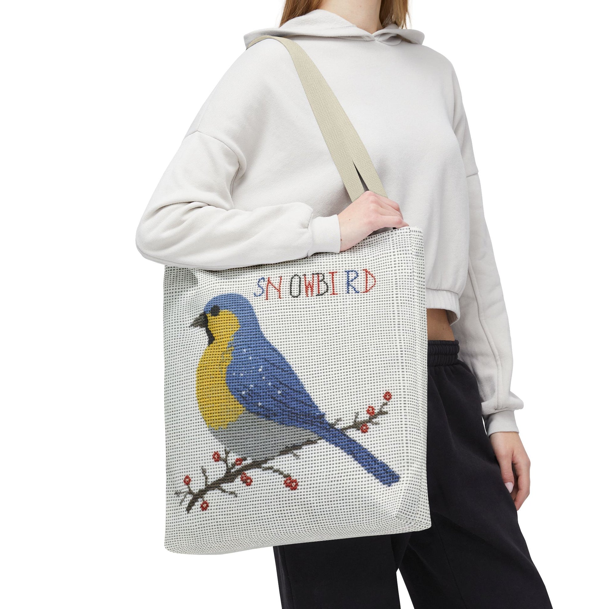 Whether you're fluttering through the farmers market, packing up for a weekend flight, or simply gathering your daily essentials, this tote blends slow-craft style with modern ease. It’s for the snowbird who appreciates the nostalgia of cross stitch but keeps a calendar full of cross-country travel.